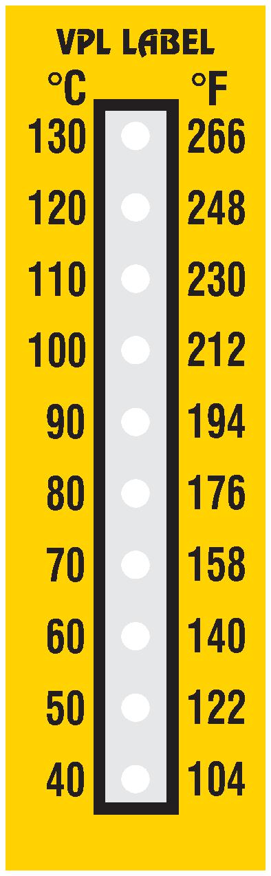 Temperature ranges Temperature Indicating Labels/Strips starts from 38 C/100 F to 230 C /446 F
