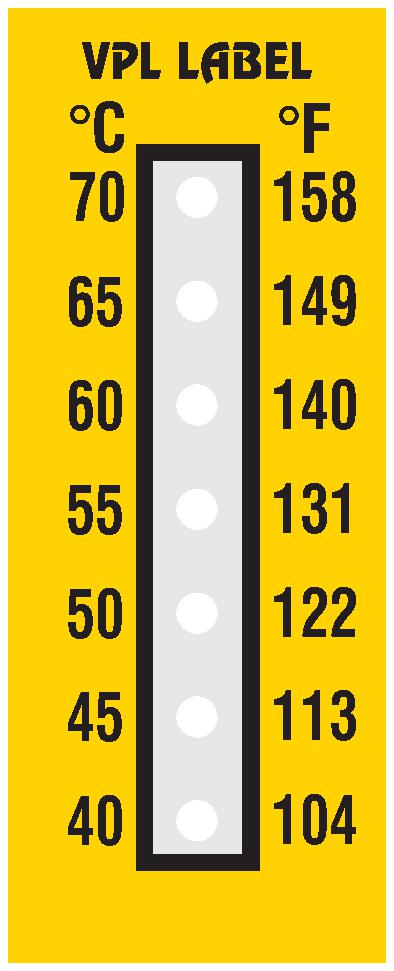 A simple, cost effective and accurate temperature measurement can be made using VPLITPL’s Irreversible temperature sensing strips/labels (VPL Label). Temperature strips / labels are also known as thermolabels, temperature indicator strips, temp. stickers/ labels, thermostrips, temperature sensing labels etc.